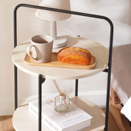 Set of 2 Stackable Natural Oak End Tables with Storage Shelf – Particle Board & Solid Pine Legs
