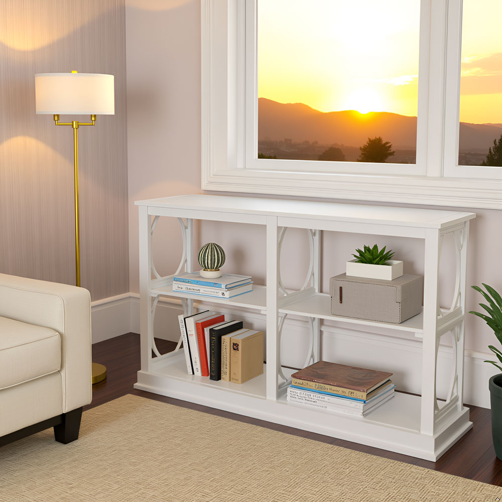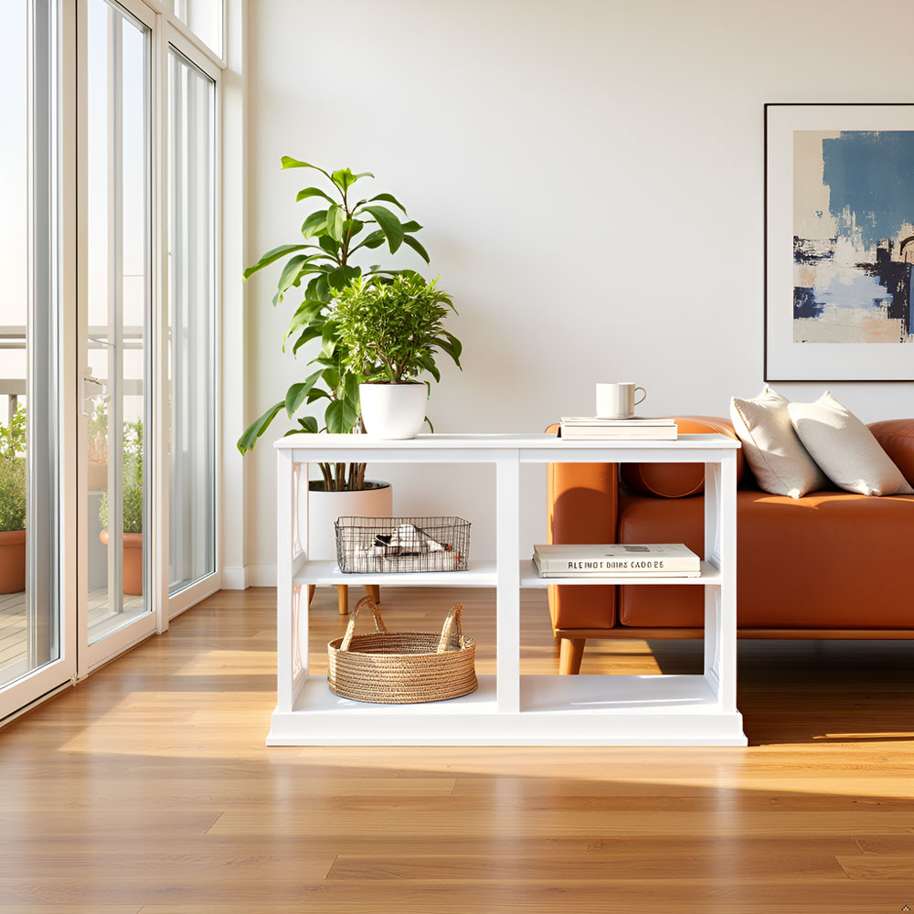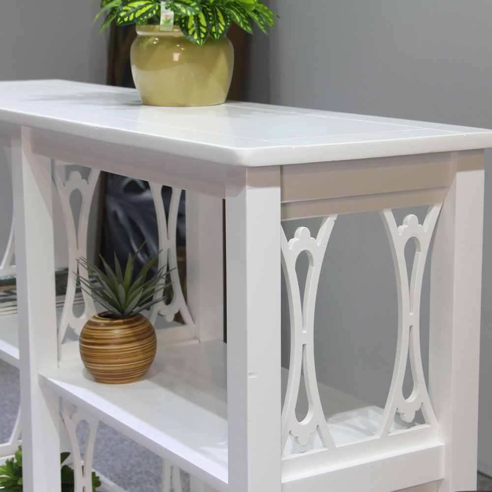 Bring timeless elegance and functional storage to your living space with this beautifully crafted acacia solid wood console table. Designed with decorative novelty frame side panels and a smooth painted finish, this piece blends classic charm with modern simplicity—perfect for entryways, living rooms, or hallway styling.