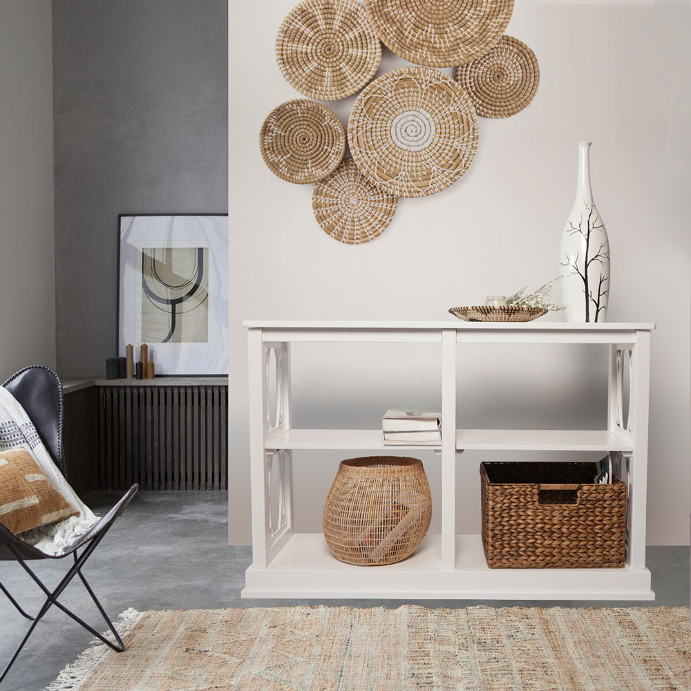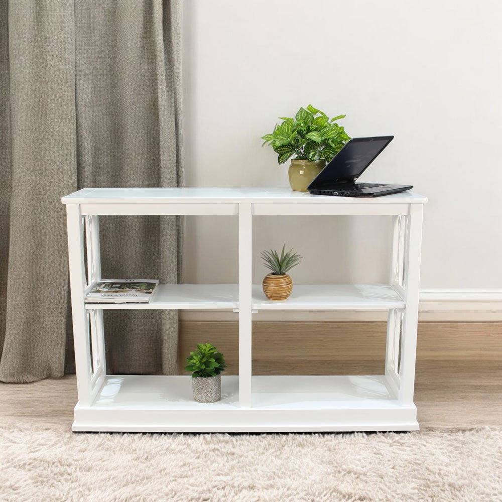 Its clean white painted look brightens interiors and complements a wide range of décor styles—from coastal and farmhouse to contemporary minimalist—making it a versatile centerpiece for organized, stylish living.