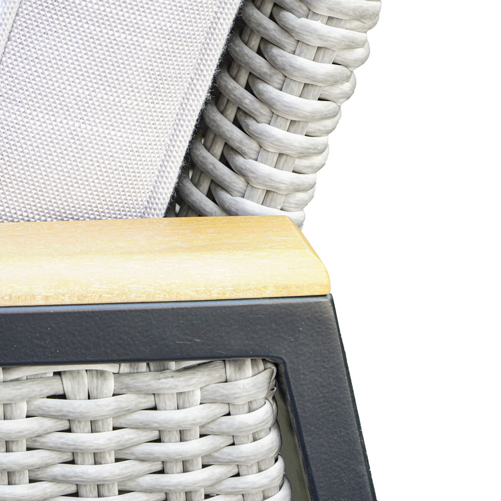 Supportive D20/H70 foam seat cushioning combined with a compressed fiber back cushion provides structured comfort, while the 275 gsm waterproof polyspun fabric helps resist moisture, fading, and daily outdoor wear.