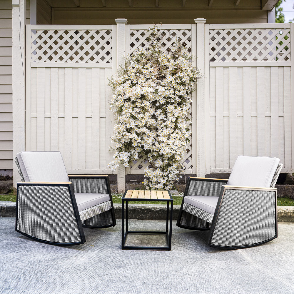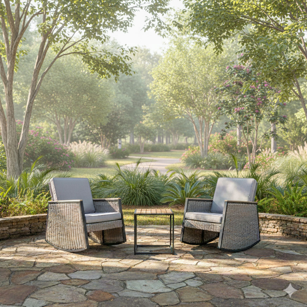 Bring a sense of calm and effortless style to your outdoor space with this patio bistro rocking chair set, thoughtfully designed for quiet relaxation and everyday comfort.