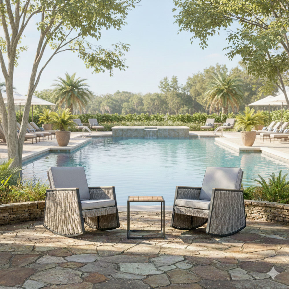 Each gently curved rocking chair encourages slow, soothing movement—perfect for morning coffee, afternoon reading, or peaceful evening conversations.