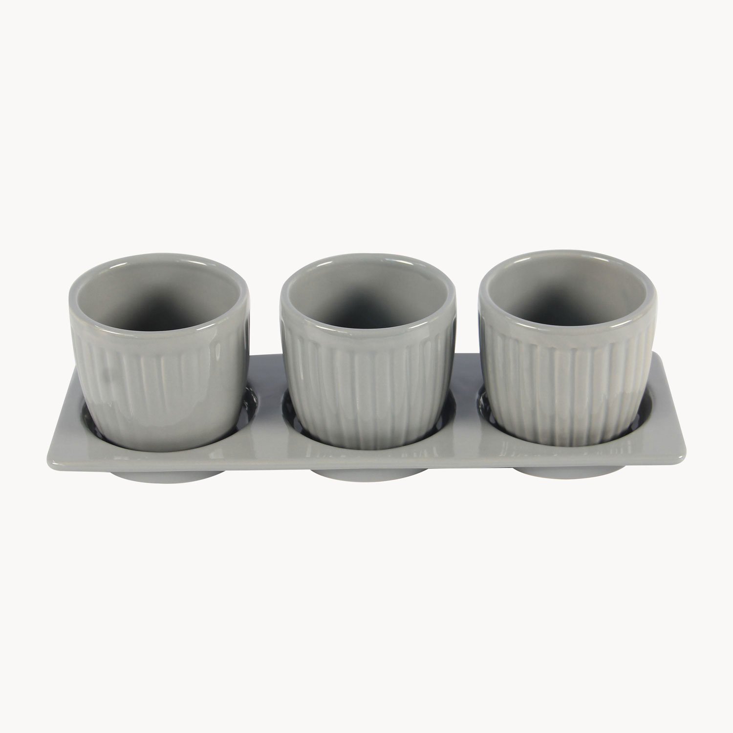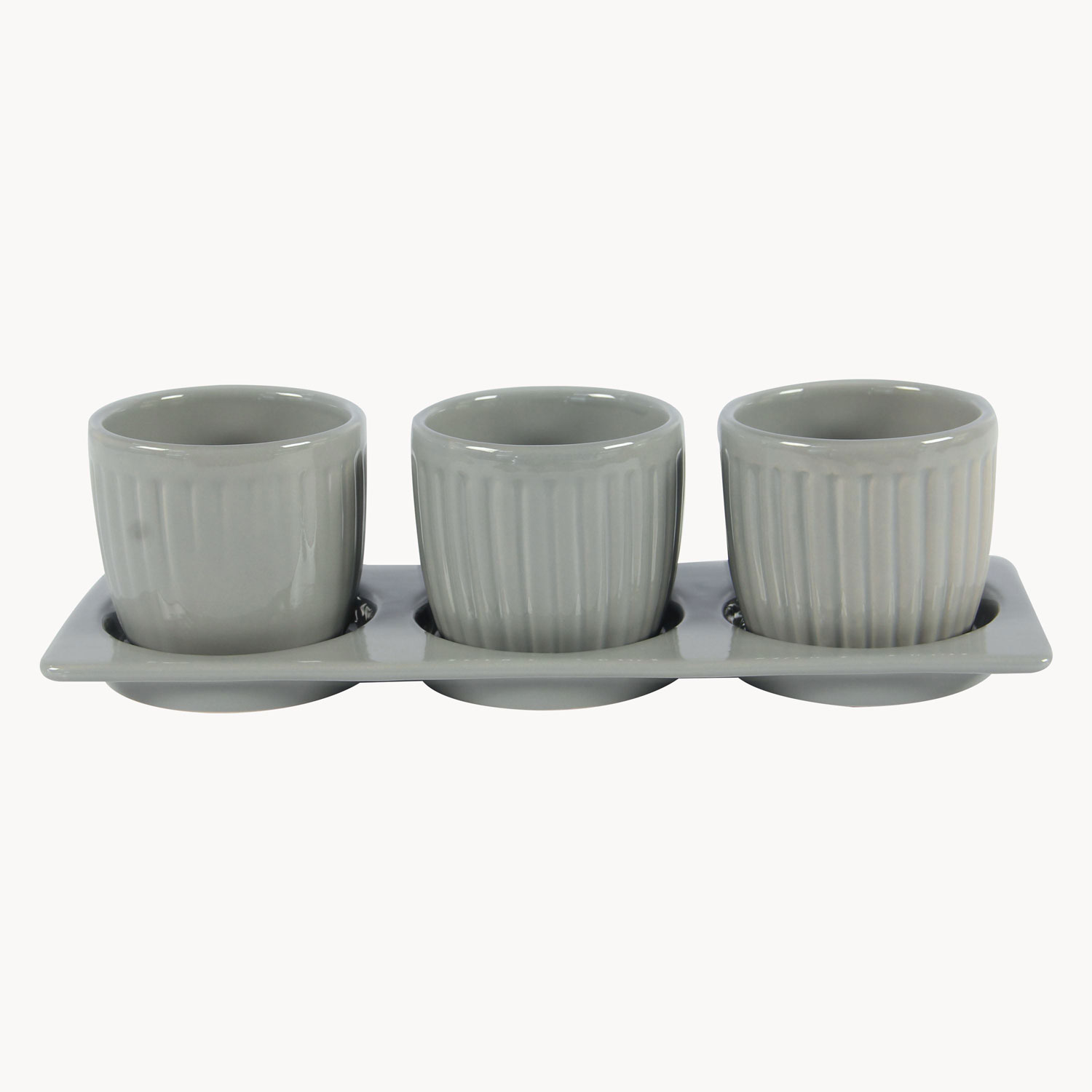 Enhance your living space with this elegant stoneware indoor planter set, thoughtfully designed to combine modern simplicity with functional plant care. Each planter features a refined embossed vertical stripe texture and a smooth glazed finish, creating a clean decorative accent suitable for shelves, desks, windowsills, and tabletops.